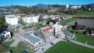 Neu an den in einigen Monaten bezugsfähigen Häusern ist die Kombination von Vorarlberger Baukultur und verdichtetem britischem Wohnbau (“Back-to-Back Houses”). Das Ergebnis ist eine kompakte, von Holz, Giebeldächern und Gauben geprägte Bauweise und eine kluge Raumaufteilung für die Nutzung durch Singles, Paare und Familien. Die Reihenhäuser weisen mit Erd-, Ober- und Dachgeschoss eine Wohnfläche von zirka 93, die Doppelhäuser auf drei Geschossen etwa 155 Quadratmeter Wohnfläche auf.